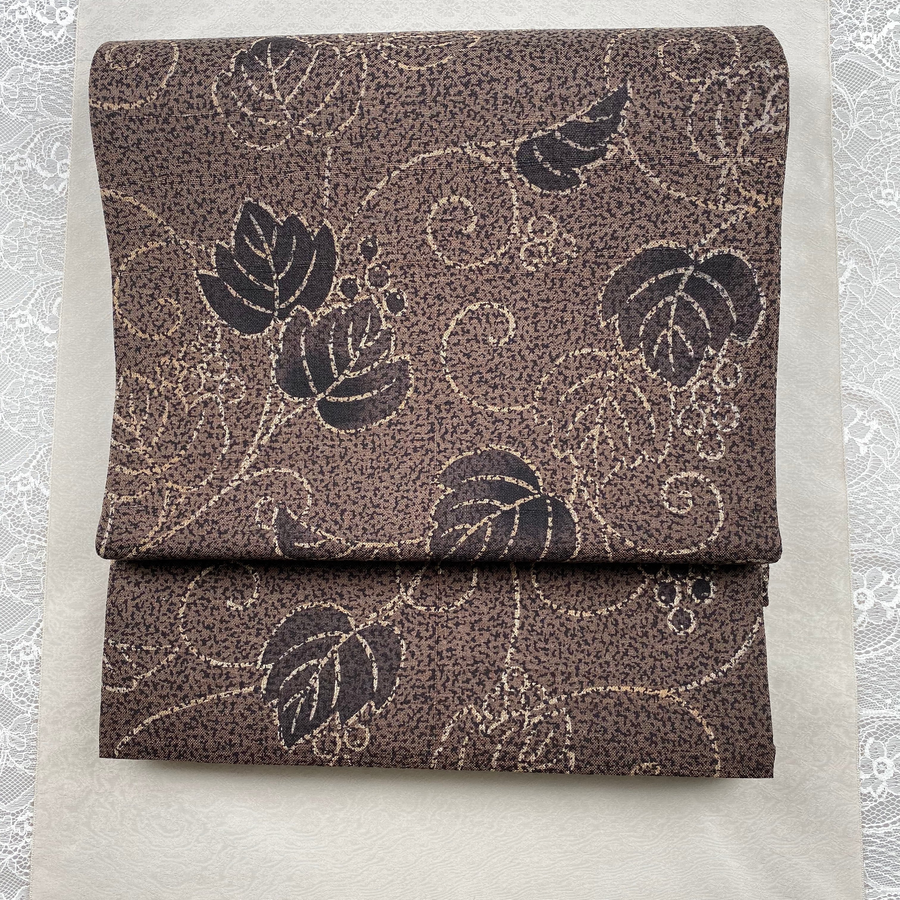 2巻目〜お太鼓〜タレまで、通しで葡萄柄が染めてあります。
